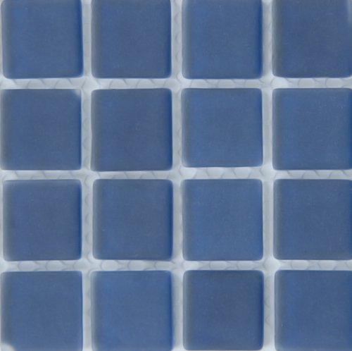 Tile can be used on interior or exterior, residential or commercial projects such as walls, bathrooms, kitchens, flooring, and swimming pools. This glass mosaic tile is made from high quality 1/8" thick tempered art glass. 7/8" x 7/8" squares of mosaic glass chips are glued to a mesh backing to preserve durability and allow for easy glass tile installation. By sandblasting the surface of the glass tile, this exclusive mosaic tile has a stylish frosted finish. This glass mosaic model is available in a blue color mix and its matte finish gives the glass tile a soft appearance.